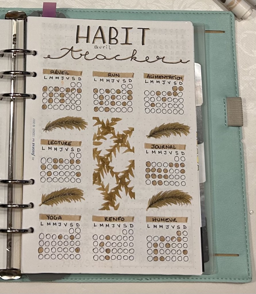 📎 Suivi des habitudes (habit tracker) : suis au quotidien tes habitudes en fonction de tes objectifs du mois, par exemple la méditation, l’hydratation, le sommeil, l’exercice).